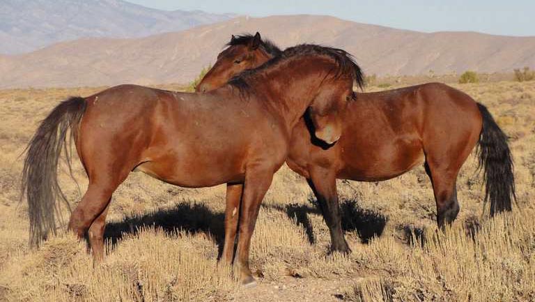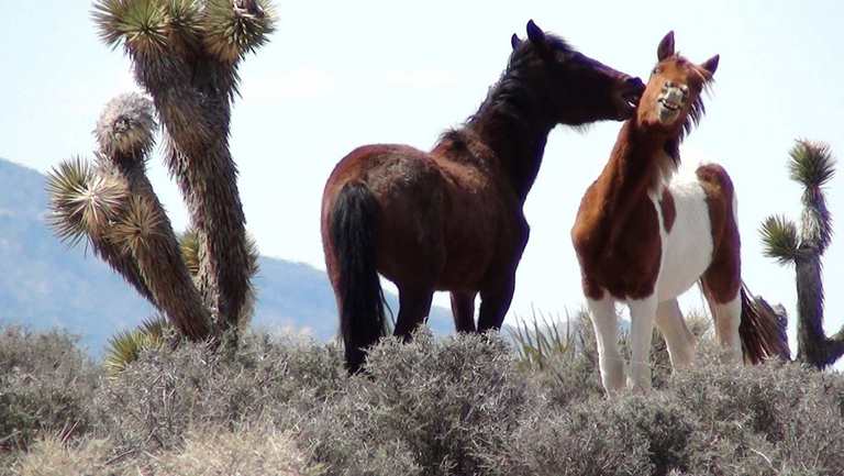 Wild horses & burros – like zebra and antelope – groom each other’s back and withers. This mutual or allo-grooming strengthens their social bonds while getting rid of flies and ticks in hard to reach places. Zoom in close on their relaxed, content faces.